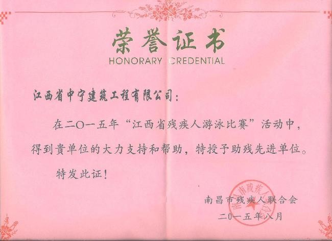 為響應(yīng)江西省體育局號(hào)召,進(jìn)一步做好殘疾人體育工作,推進(jìn)我市殘疾人體育事業(yè)在新的起點(diǎn)上實(shí)現(xiàn)又好又快地發(fā)展,我司贊助2萬(wàn)元人民幣作為支持《殘疾人游泳、田徑、羽毛球、兵乓球比賽》活動(dòng)基金。