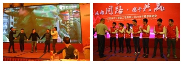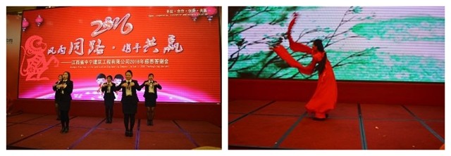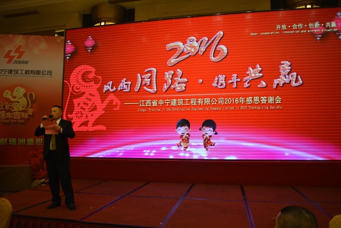 晚上19:07分,在南昌市紅谷灘區(qū)秋水廣場旁泰耐克大酒店,伴隨著鞭炮音樂聲,江西省中寧建筑工程有限公司2016年迎新春晚會正式拉開序幕。