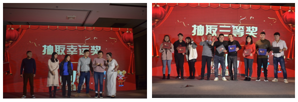 為了更好的體現公司對員工的關懷,本次年會為所有蒞臨的嘉賓送上了特等獎、一等獎、二等獎、三等獎、幸運獎五輪抽獎活動,同時為每一位到場的嘉賓準備了精美禮物。獎品有五千元現金大紅包、華為P30pro手機、松下吹風機、藍牙耳機、華為電動牙刷......豐厚的獎品 ,精彩的節目,把現場烘托的十分熱鬧。