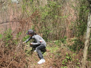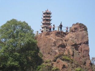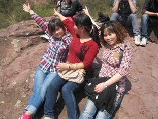 沿著島上的小路,忽然發現這條路一直延伸到兩塊大大的巖石中間,抬頭望去,這不就是一線天嗎?緊連著的是回聲四起的巖石湖,據說湖深莫測。羊腸小道,依山而繞。無意中在山腳下發現了許多蕨菜。這么原生態的綠色食品,誰都不愿錯過。同事們你一根我一根的,享受著采摘的樂趣。在不知不覺中,我們來到了石塔山下,順著石階,我們爬上了山頂。依石塔而立,居高臨下,放眼望去,磯山與鄱陽湖盡收眼底,感覺像是站在北京的高樓看中國,借此喻意,祝我們中寧公司未來的前程,平步青云。